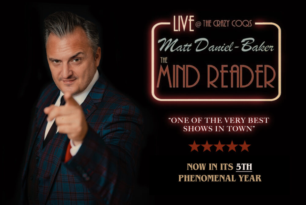 • Step into the magic at The Crazy Coqs for the 5th phenomenal year of Matt Daniel-Baker: The Mind Reader.